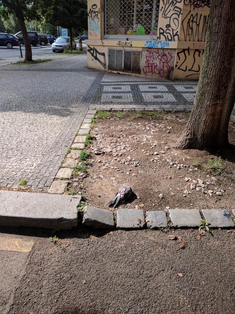 Mrtvý holub na ulici.