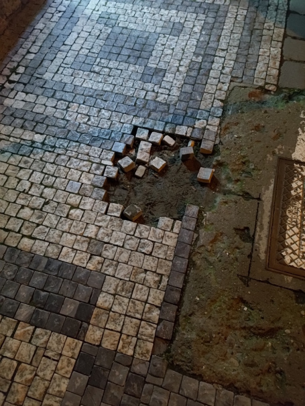 před Bořivojovou 55 jsou vymleté kostky v chodníku