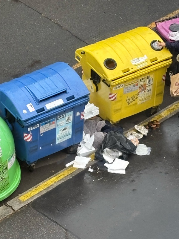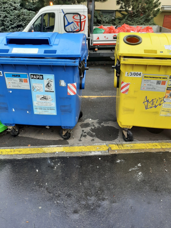 Už 3 dny je tu bordel kolem tříděného odpadu, po popelářích tu nebyl nikdo aby zkontroloval čistotu kolem popelnic
