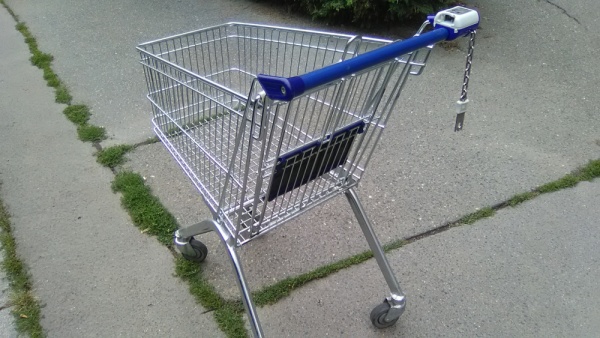 Nákupní košík v chodníku.