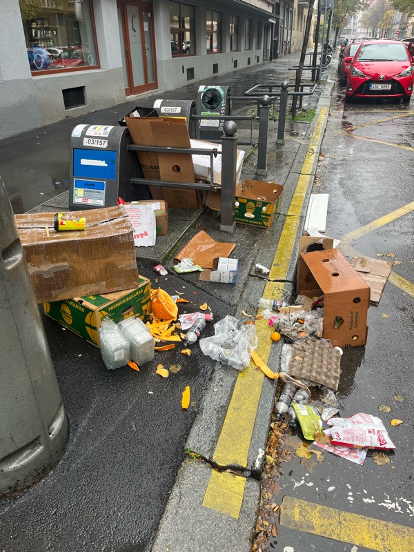 Dobrý den, děkujeme za Váš podnět. Tato plocha by měla být pravidelně uklízena pracovníky svozové služby. V rámci pravidelného úklidu by měli vše odstranit. Následně, hned jak to bude možné, provedeme kontrolu, zda se tak skutečně stalo a případně místo poklidíme. Krásný den Vaše Čistá Trojka