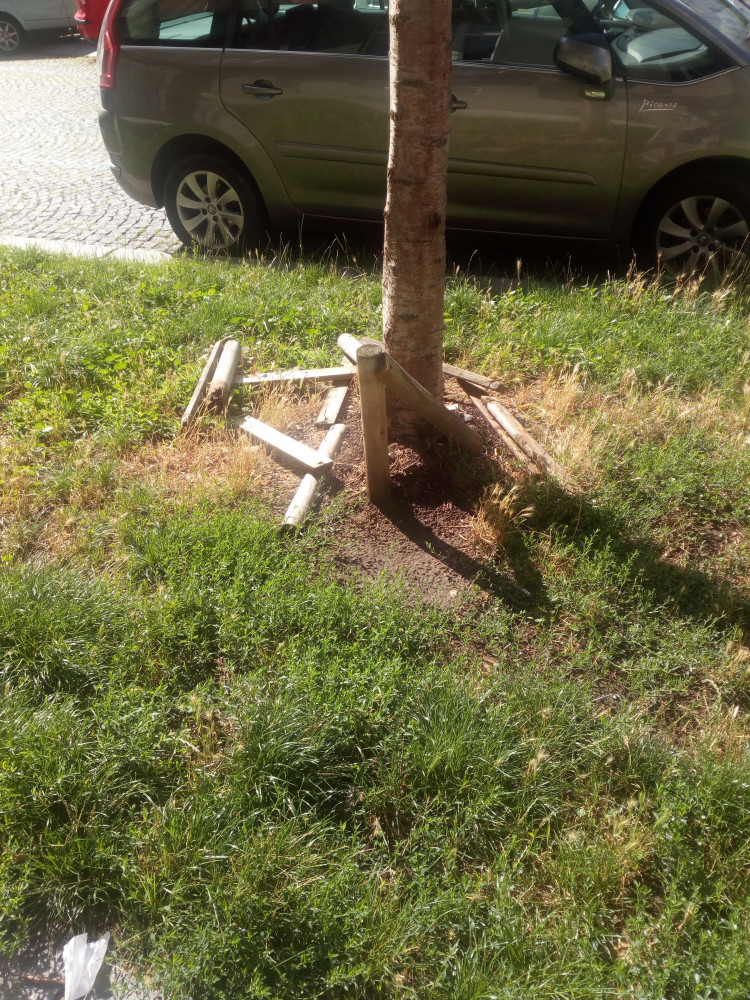 Lampa u baráku č.3 na Skroupovo náměstí nemá chranic u el. rozvodu a zároveň je zde u stromu rozmlacene dřevěné oplocení . Prosím o vyřešení obojího...