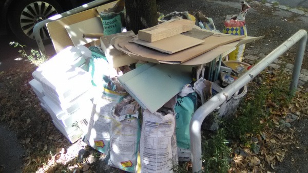 Černá skládka suti a materiálu po rekonstrukci.