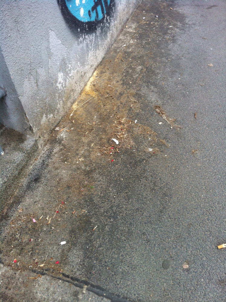 Před domem 1710/26 v ulici Čajkovského jsou nedopalky, hromádky nepořádku + asfalt je znehodnocen pravděpodobně psími exkrementy.