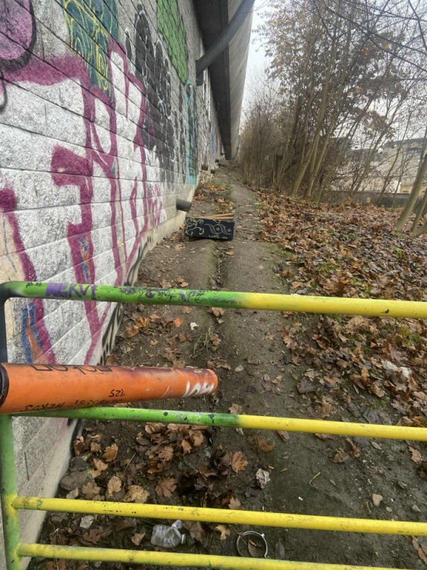 Nicméně těch 80 % odpadu je do těch max. 10 metrů okolo tohoto průchodu... Vyfotil jsem tak alespoň jednu část toho podchodu s tím, že na té druhé je to totožné. Kromě běžných odpadků, které je potřeba vysbírat je tam např. i kus postele. Na druhé straně východu totéž.