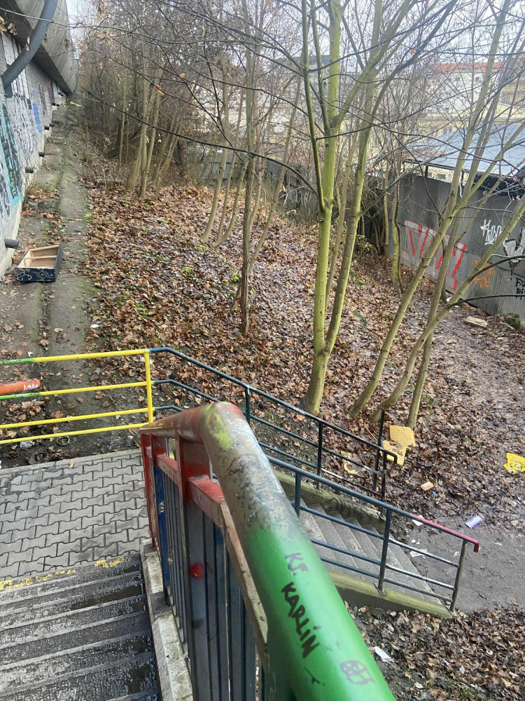 děkujeme za doplnění, bohužel ostatní pozemky spadají pod MČ Karlín a bylo by tedy vhodné kontaktovat přímo je (pozemek vpravo od schodiště patří soukromé společnosti, vlevo pak HLMP). Pořádek můžeme zajistit jen na pozemcích ve správě či majetku MČ P3. Děkujeme za pochopení.