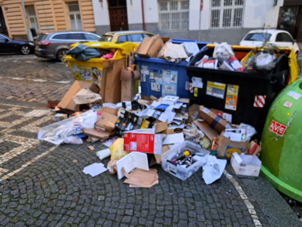 Dobrý den, děkujeme za Váš podnět. Tato plocha by měla být pravidelně uklízena pracovníky svozové služby. V rámci pravidelného úklidu by měli vše odstranit. Následně, hned jak to bude možné, provedeme kontrolu, zda se tak skutečně stalo a případně místo poklidíme. Krásný den Vaše Čistá Trojka