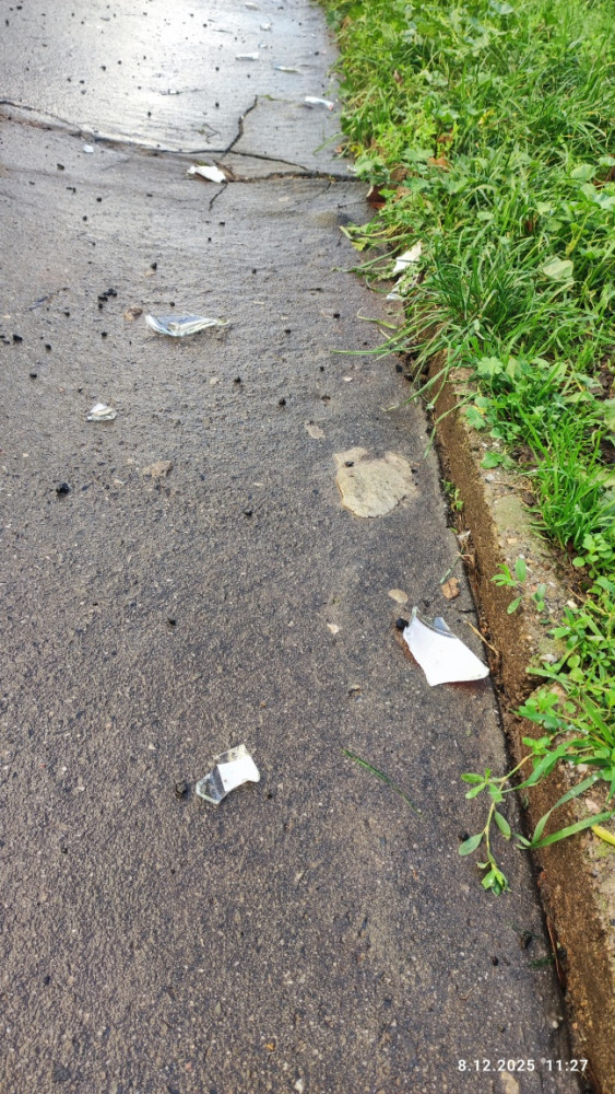 Skleněné střepy před MŠ Roháčova