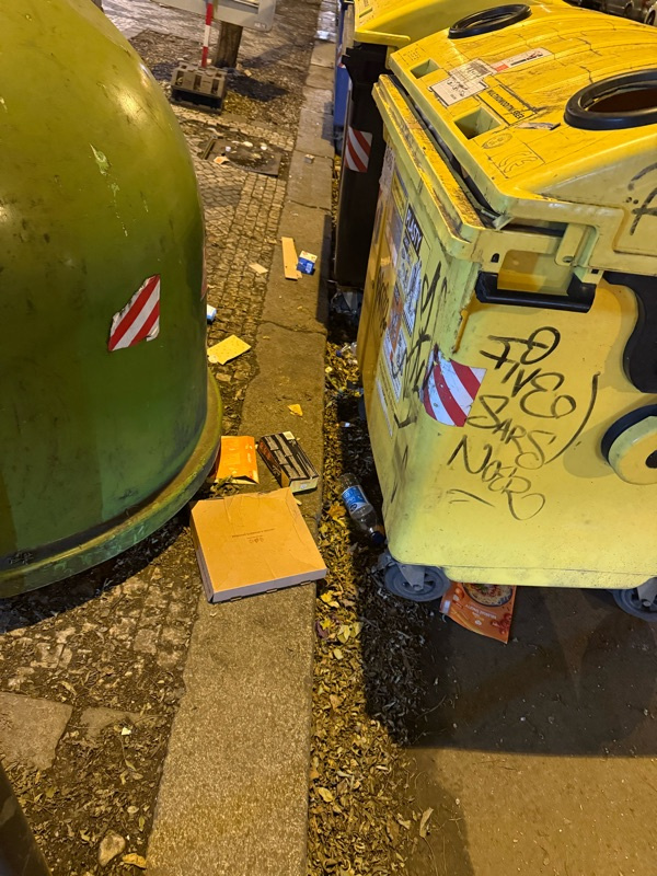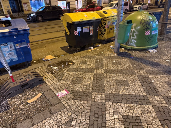 nepořádek okolo kontejnerů Korunní 83-85 Praha 3