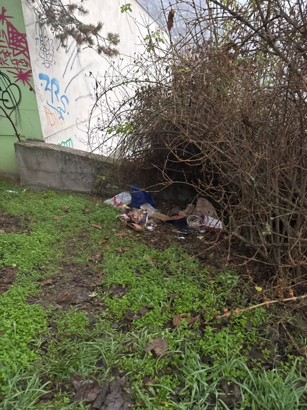 Skládka odpadků z boku garáži pod lipami X Plavinová. Vedle schodů. Děkujeme.