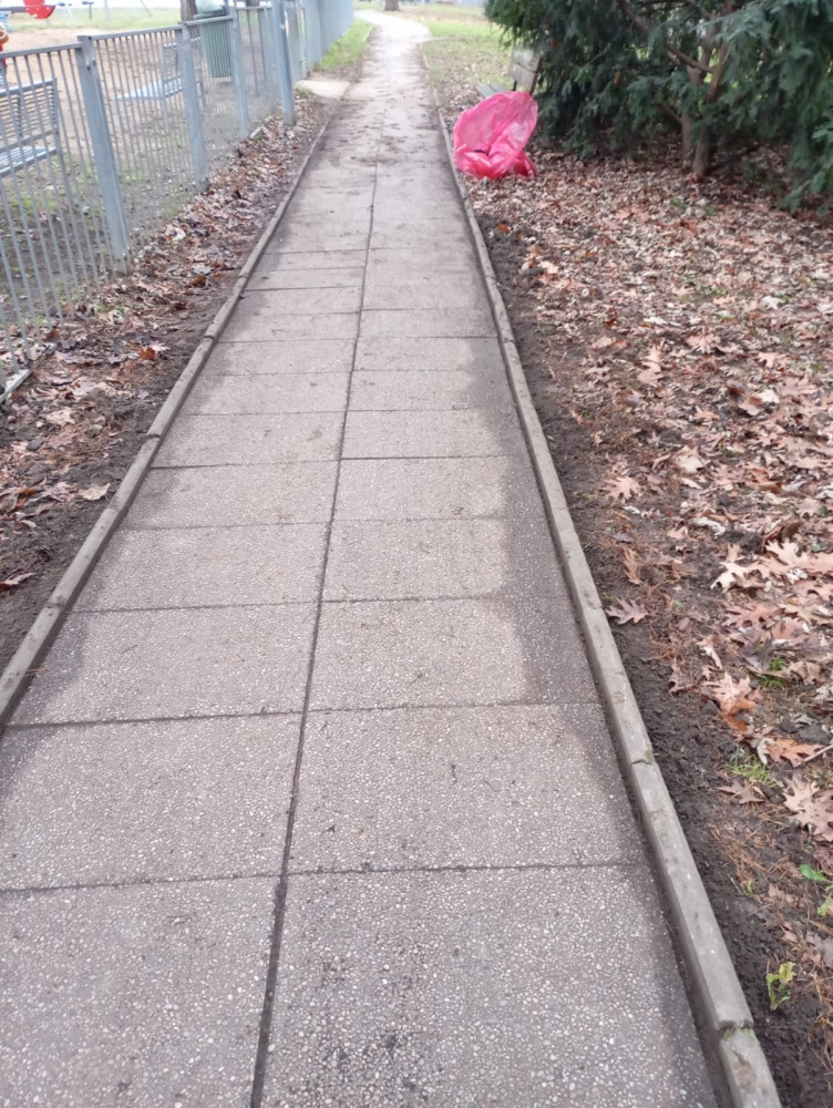 Prosím o úklid spadaného listí lokalita V Jezerách, dost to klouže.