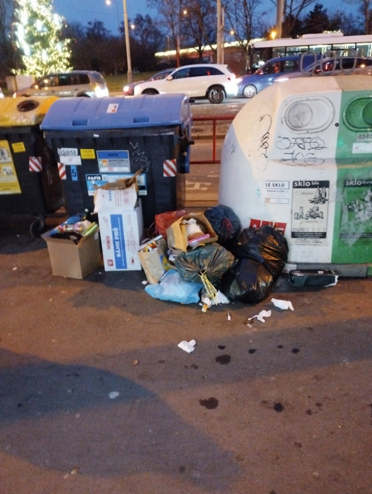 opakovaně nevyvezeny kontejnery, behem celeho tydne