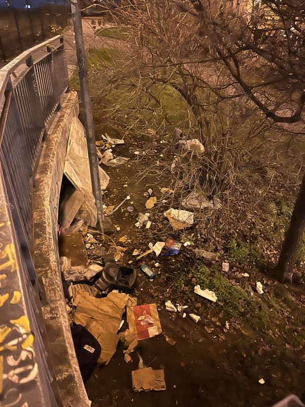 děkujeme za Váš podnět. Pořádek můžeme zajistit pouze na pozemcích v majetku čí správě MČ P3. Zde se jedná o pozemek HLMP, problém je nahlášený a v řešení. Děkujeme za pochopení.