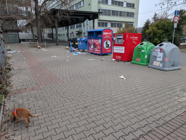 Rozházené popelnice bezdomovci