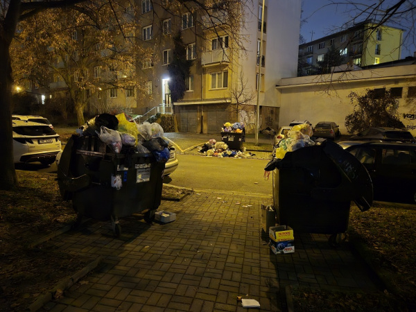 Doplnění: popeláři sice vyvezli kontejnery ale bordel okolo zůstal a ještě to rozkopali do prostoru.