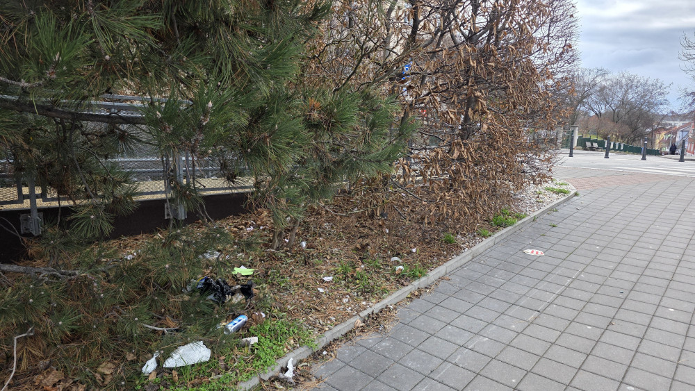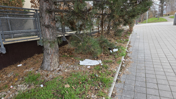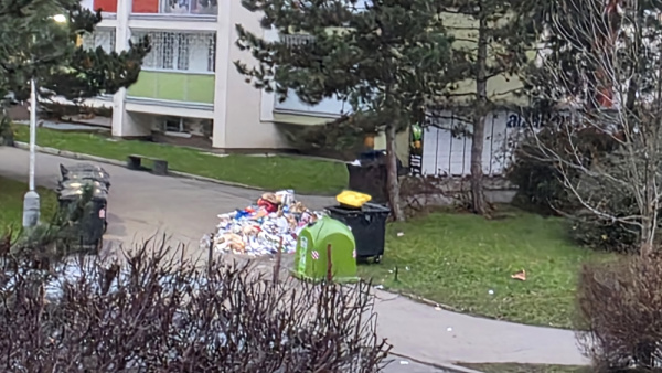 Dobry den, trapi na necistoty, ktere neustale letaji pres ulici do upravovane zelene velkeho obytneho domu V Zahradkach 50 z kontejneru ubytovny koleje VSE V Zahradkach. Kontejnery maji neustale preplnene a necistoty letaji az k nam - mnohdy az na hlavni silnici Hartigova. Prosime o opatreni a uklid - vcera jsme uklidily sami a dnes to vypada takto - viz foto