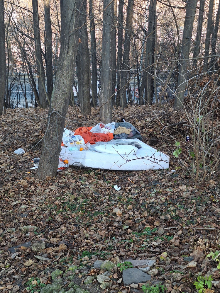matrace a další odpad v zeleni