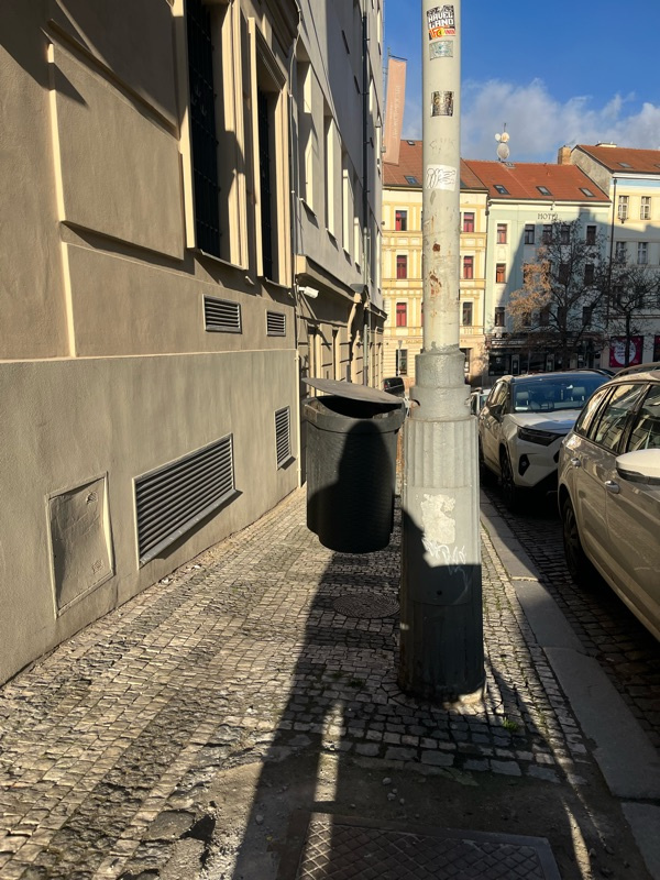 koš je na špatné straně lampy a blokuje tím průchod chodníkem, ostatní koše jsou vždy na straně k vozovce.