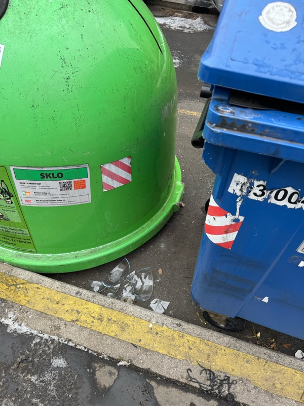 děkujeme za Váš podnět. Úklid jednotlivých stanovišť kontejnerů na tříděný odpad probíhá pravidelně podle stanoveného harmonogramu (od 6:00 do do 22:00 každý den včetně sobot a nedělí). Provedeme kontrolu a případně předáme podnět společnosti AVE CZ, která kontejnery na tříděný odpad vyváží a za pořádek kolem nich odpovídá.