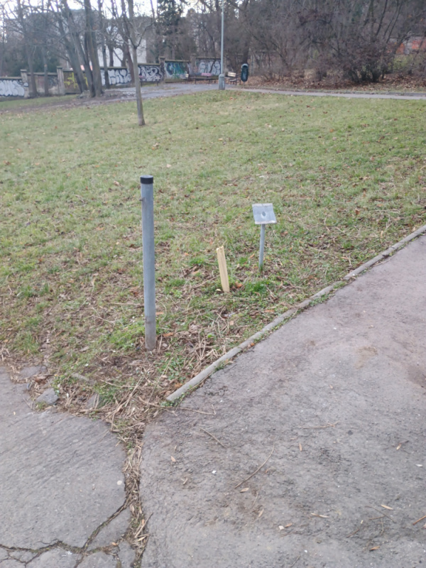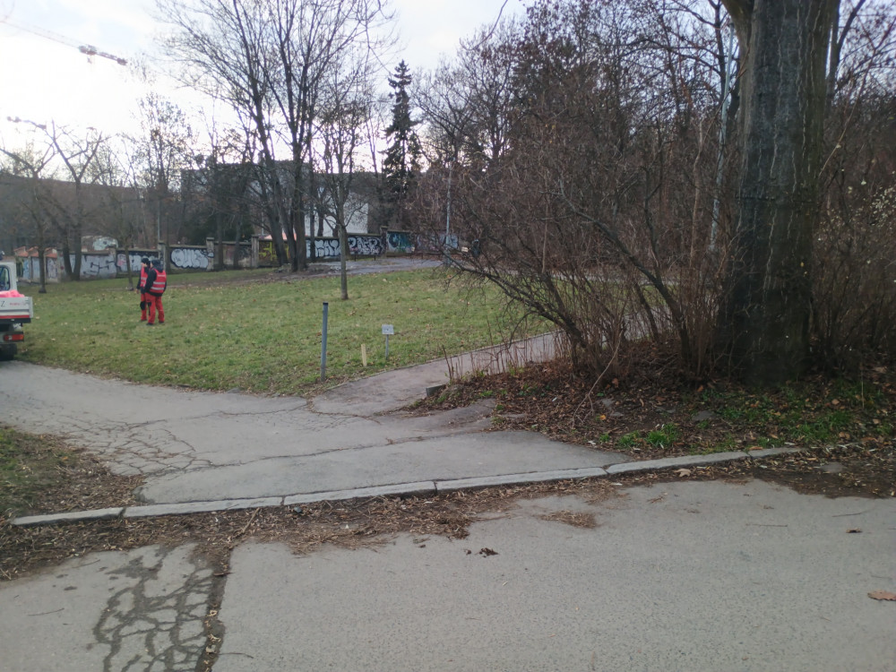 chybí koš a zimní cedule. park po kapličkou Izraelská