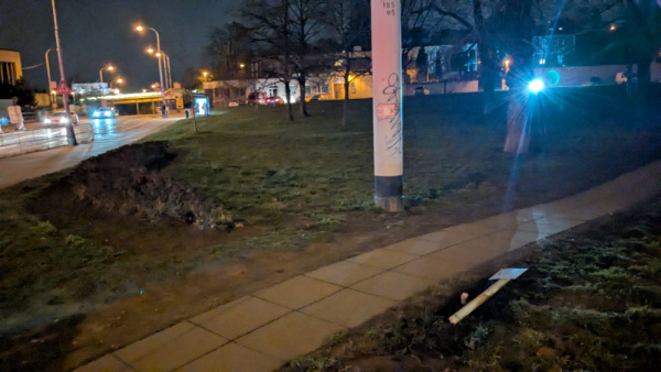 Na olsanskem namesti u parku je urvana cedule cesta se v zimně neudržuje