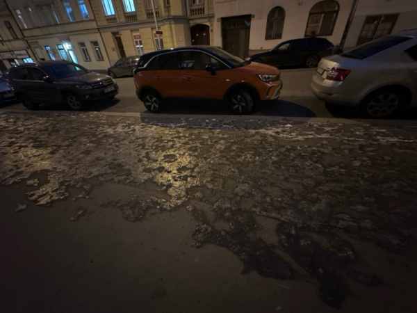 Zledovatělé chodníky Ondříčkova a Čajkovského, prosíme o důraznější posyp či odstranění - málem jsem se zabil.