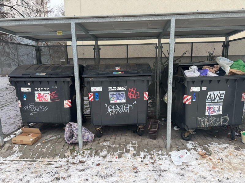 Prosime o vycisteni a uklid popelnicove koje a okoli. Dekujeme