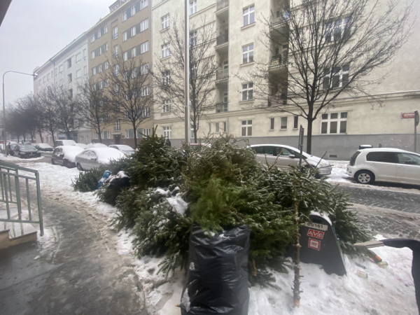 děkujeme za Váš podnět. Zcela správně dle pokynů Pražských služeb občané shromažďují stromečky na místech určených. Stromečky budou odvezeny dle harmonogramu PS. Pokud by nedošlo k odvezení v nejbližších dnech, PS upozorníme. Děkujeme za pochopení.