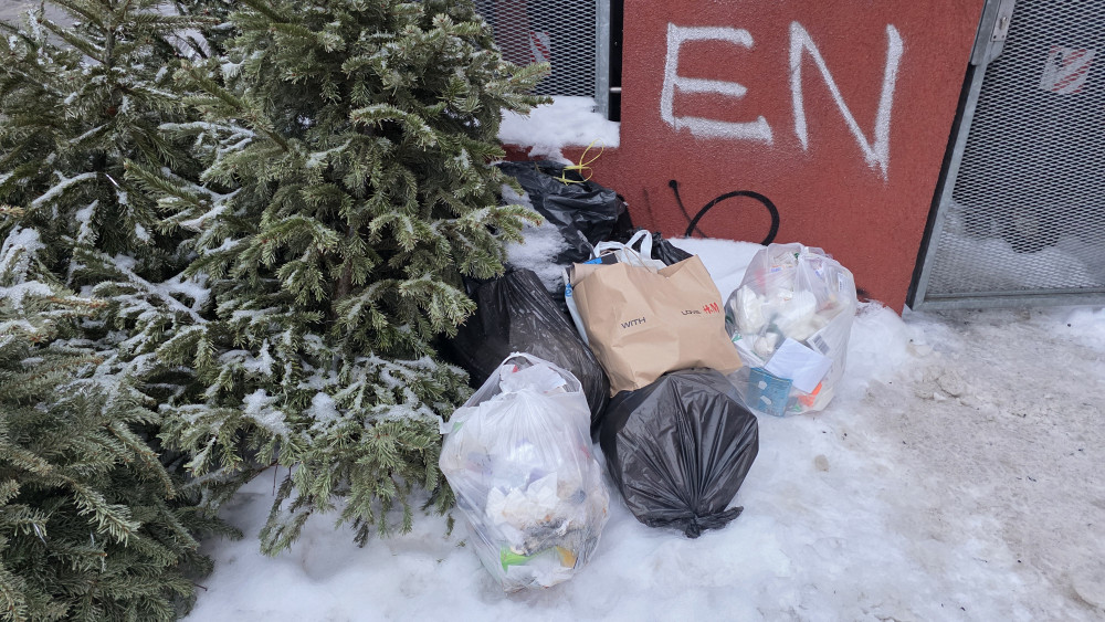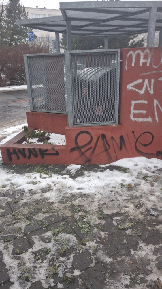 Prosime o uklid kolem domecku na kontejner v ulici V Zahradkach 50 - studenti z koleji VSE zde odkladaji odpad, ktery zasahuje chodnik i pozemni komunikaci.