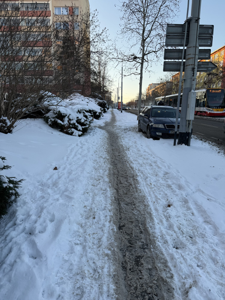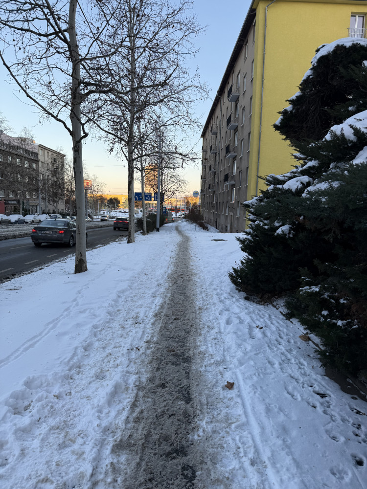 Dobrý den, bylo by možné odklidit sníh na chodníku mezi zastávkami kněžská luka a spojovací na pravé straně směr Spojovací? Na druhé straně a po celé Hartigově je to krásně ošetřené, ale na tomto kousku se nedá chodit a ani pořádně projet s kočárem.