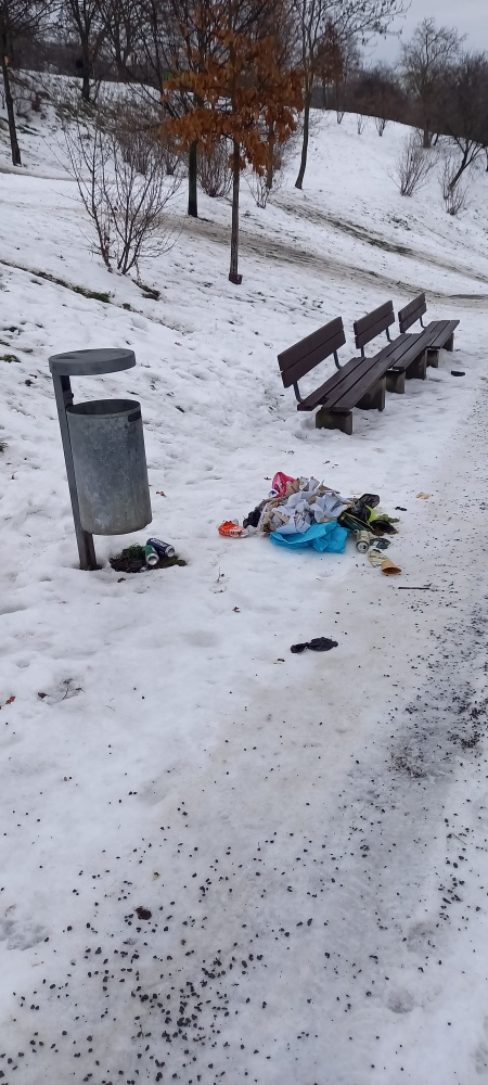 prosim o uklid neporadku kolem odpadkoveho koše, ktery nekdo vysypal. Nachazi se u lampy 301031