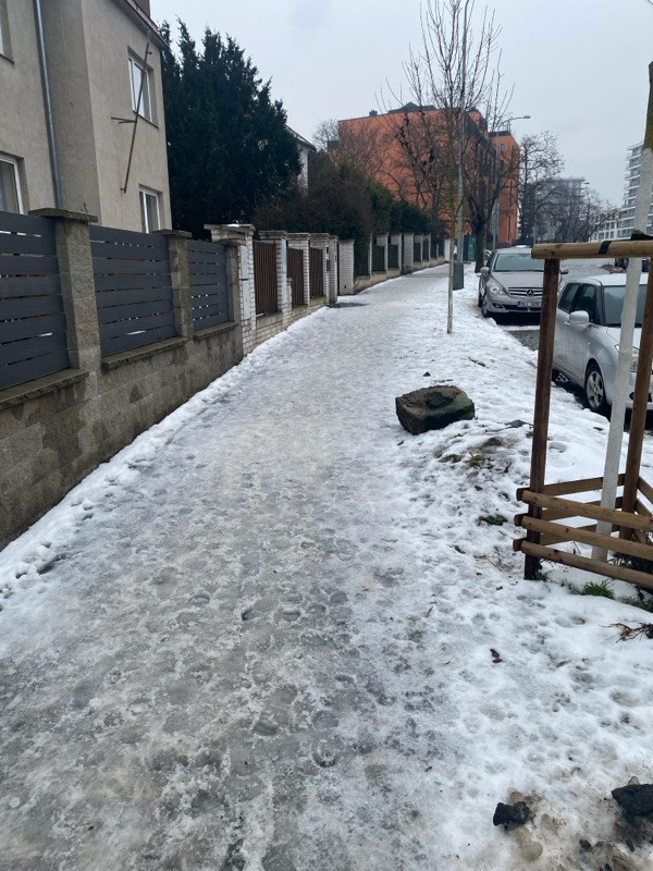 děkujeme za Váš podnět. Vlastníkem komunikace je HMP a správu zajišťuje Technická správa komunikací hl. m. Prahy dle plánu zimní údržby viz (tskarcgis.westeurope.clouda… Je potřeba se tedy obracet na TSK prostřednictvím online formuláře: zavady.tsk-praha.cz.
