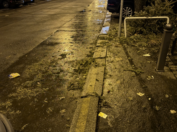 Cela ulica Lucemburska je spinava a plna odpadkov. Asi pracovnici uklidu maju stale novorocni dovolenou.