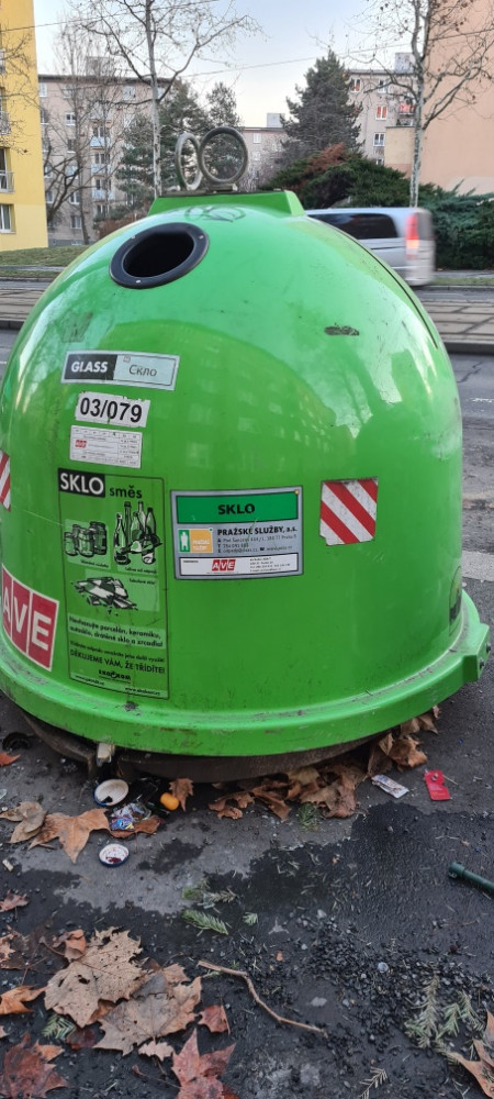 děkujeme za Váš podnět. Úklid jednotlivých stanovišť kontejnerů na tříděný odpad probíhá pravidelně podle stanoveného harmonogramu (od 6:00 do do 22:00 každý den včetně sobot a nedělí). Provedeme kontrolu a případně předáme podnět společnosti AVE CZ, která kontejnery na tříděný odpad vyváží a za pořádek kolem nich odpovídá.
