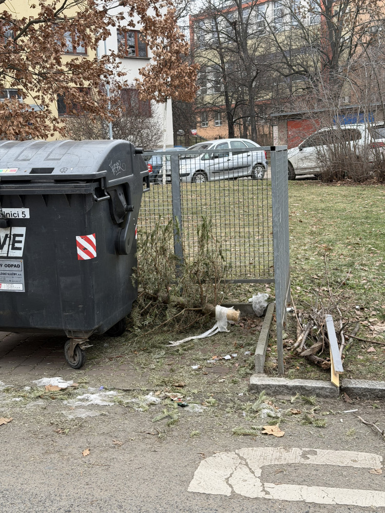 Dobrý den. Prosíme o odstranění stromku u kontejneru. Děkujeme Lázníčková