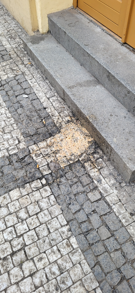 děkujeme za Váš podnět. Tato plocha by měla být pravidelně uklízena pracovníky úklidové služby, kteří by v rámci pravidelného úklidu měli vše odstranit. Váš podnět jim zašleme k vyřešení.