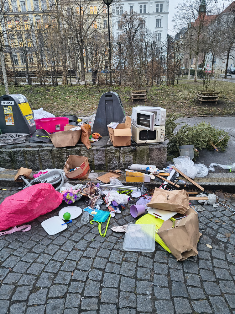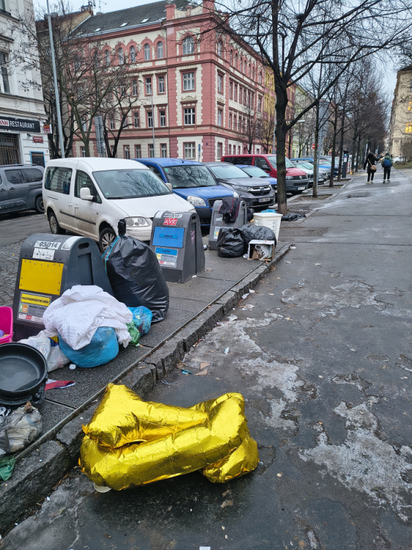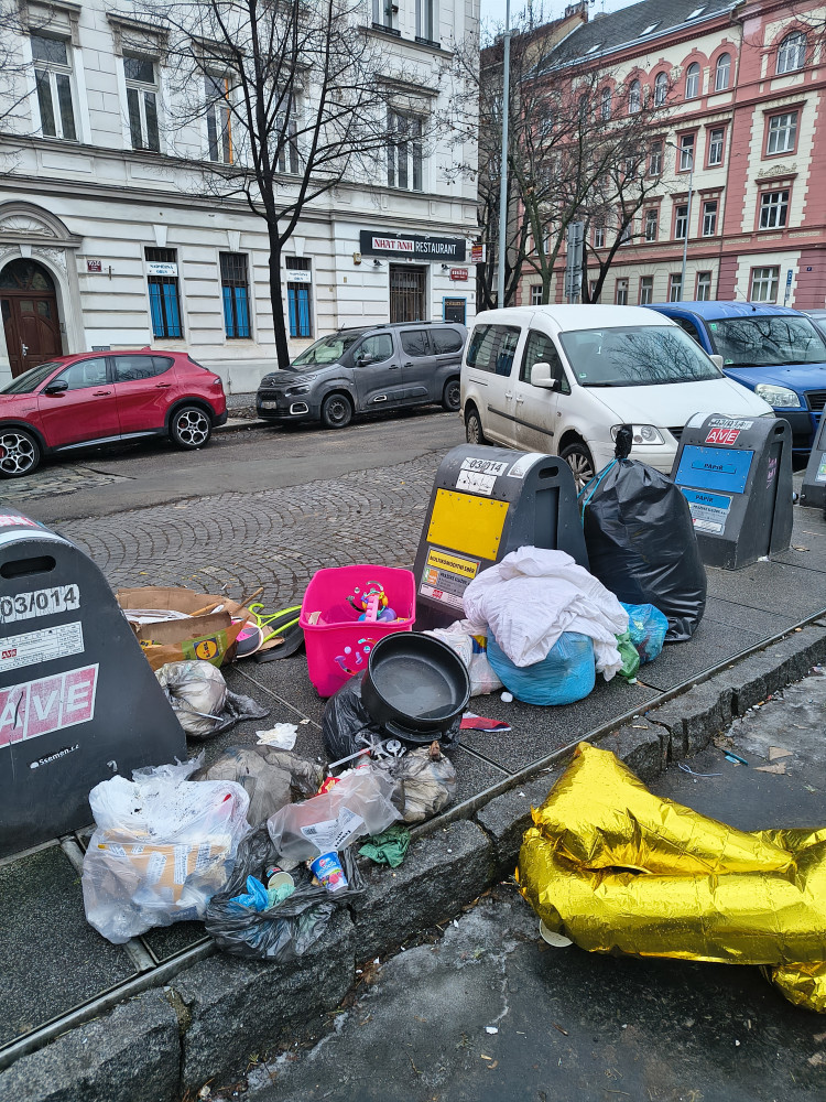 Na náměstí barikádu tříděného odpadu je opravdu veliké množství směsného odpadu poházeného okolo.