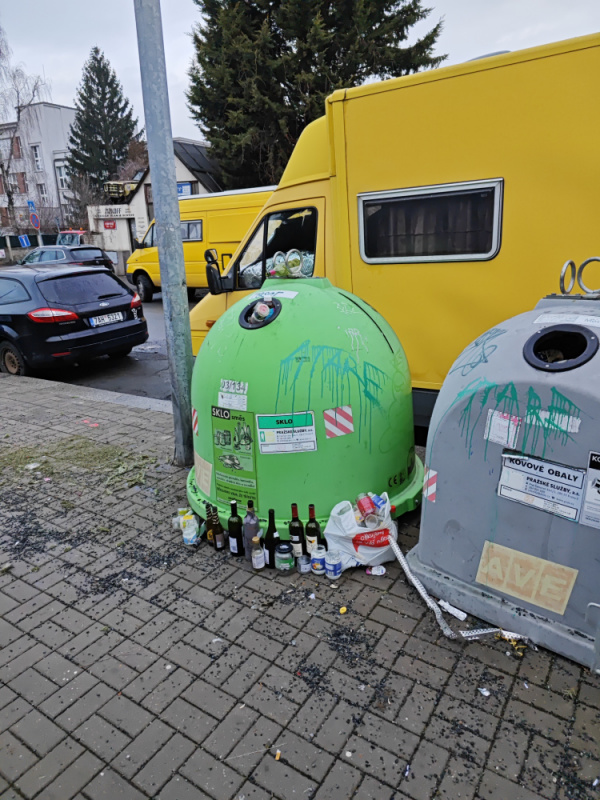 již 14 dní nebyl vyvezen kontejner na sklo