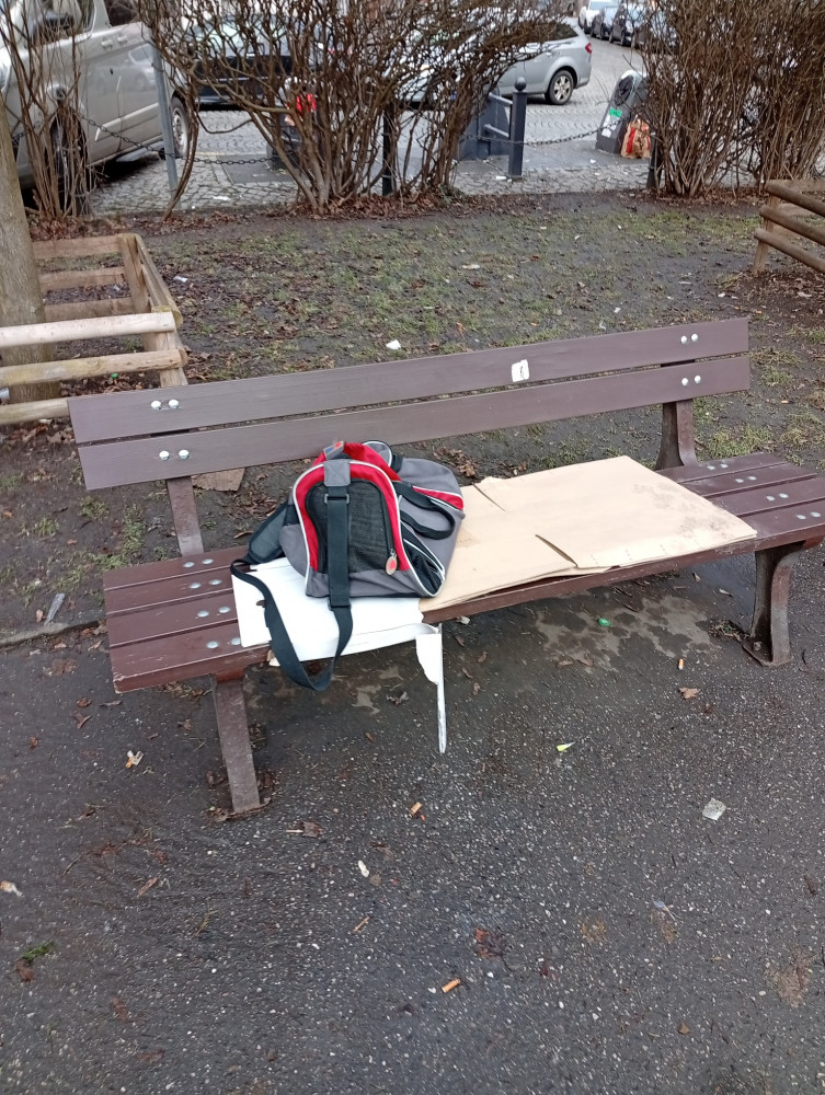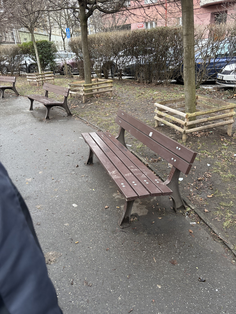 nepořádek na lavičce škroupovo náměstí 2