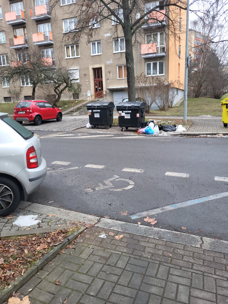 Okolo kontejnerů na komunalní idpadna křižovatce Pod Lipami x Buková je zase nepořádek. Prosím o úklid.