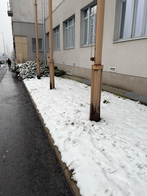 děkujeme za Váš podnět. Předali jsme ho k posouzení kolegům z oddělení stavební kontroly MČ Praha 3 a požádali o prověření, zda nehrozí pád některého ze stožárů. Stožáry jsou na pozemku a v majetku České pošty a.s. Pokud se jedná jen o povrchovou korozi a není narušena konstrukce a stabilita stožárů, nebude bohužel nejspíš v naší moci přimět vlastníka, aby zajistil nový nátěr stožárů a uvedl je do lepšího vizuálního stavu.