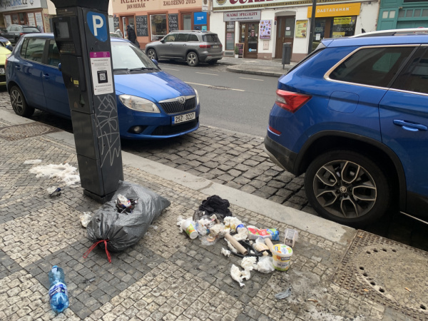 Roztrhaný pytel na odpadky