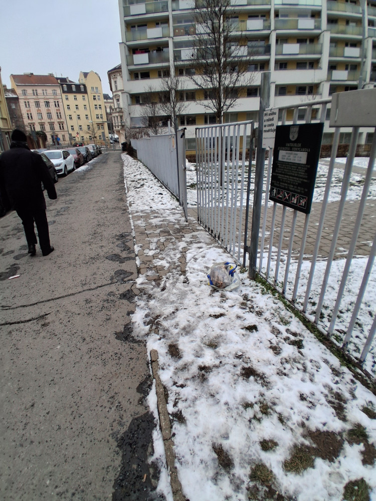 Prosím odvézt tašku s odpadky u DH Jeseniova. Děkuji