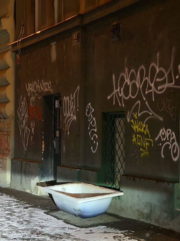 To už je fakt moc! Vana na ulici… stejná adresa Bořivojova 83.
