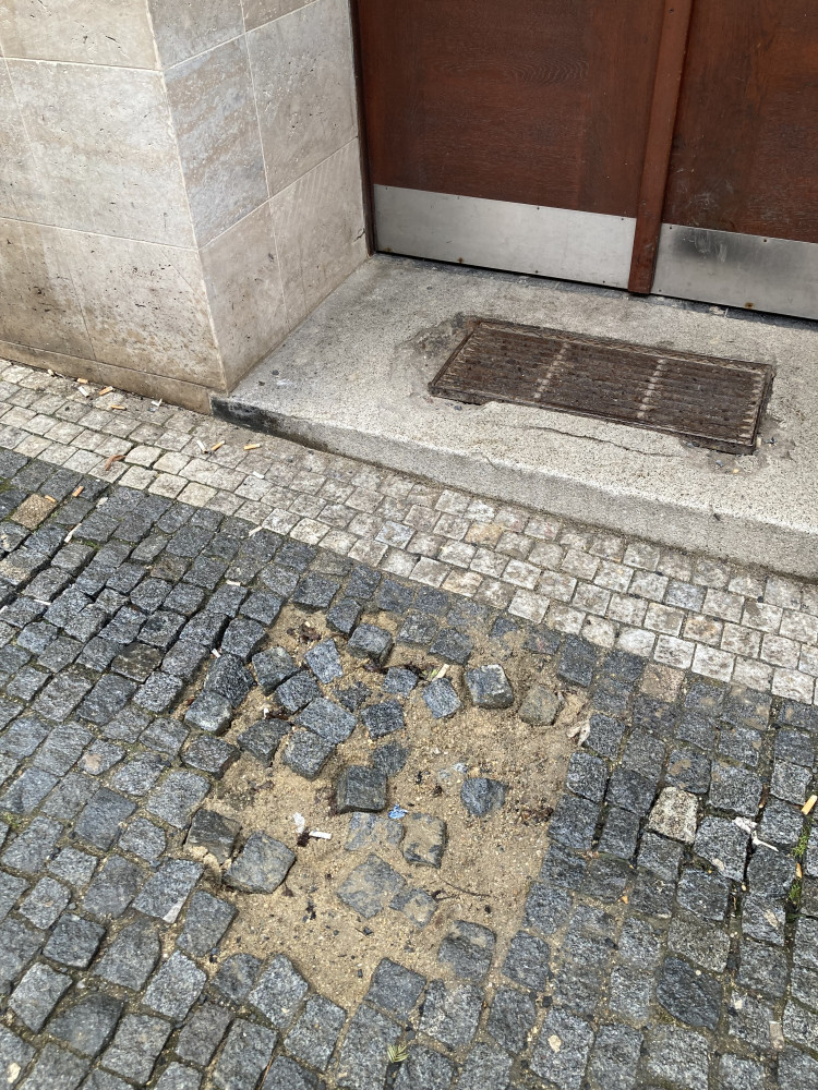 Dobrý den, posílám stav chodníku před vchodem do domu v Sudoměřské 5. Závadu jsem ohlašivala již 15.8.2025. Od té doby se stav zase zhoršil.