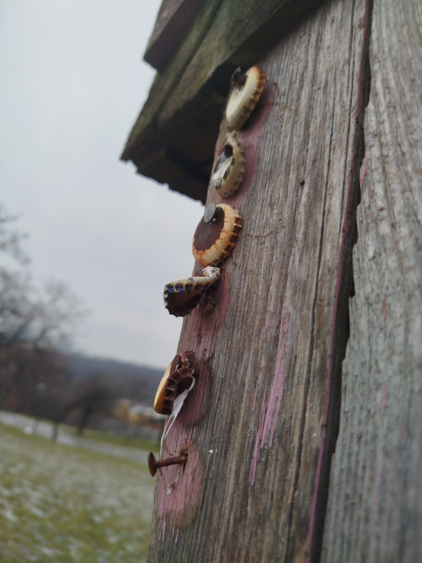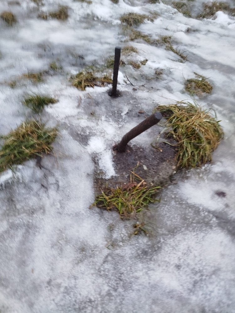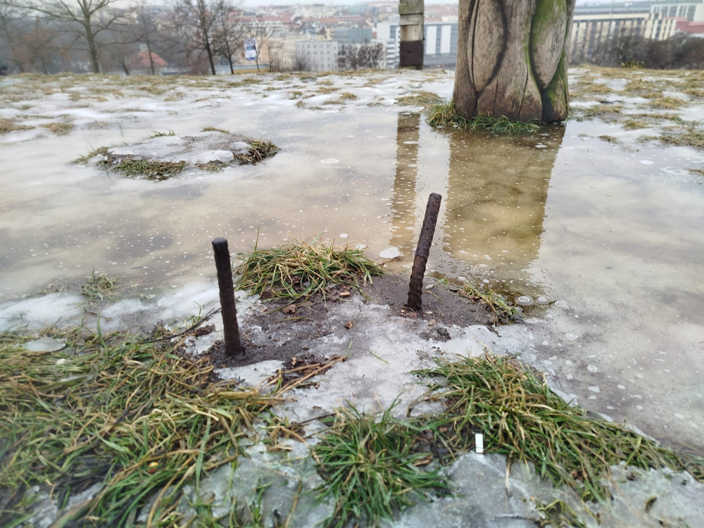 nebezpečné trny čnějící že země, nebezpečné hřebíky zatlučené do dřevěné brány na vrchu sv. kříže