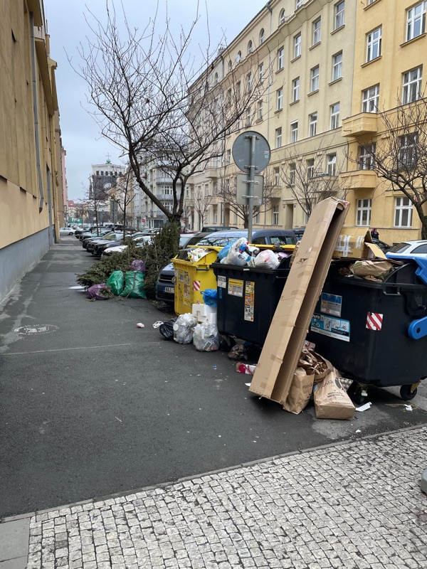 děkujeme za Váš podnět. Úklid jednotlivých stanovišť kontejnerů na tříděný odpad probíhá pravidelně podle stanoveného harmonogramu (od 6:00 do do 22:00 každý den včetně sobot a nedělí). Provedeme kontrolu a případně předáme podnět společnosti AVE CZ, která kontejnery na tříděný odpad vyváží a za pořádek kolem nich odpovídá.