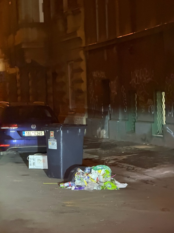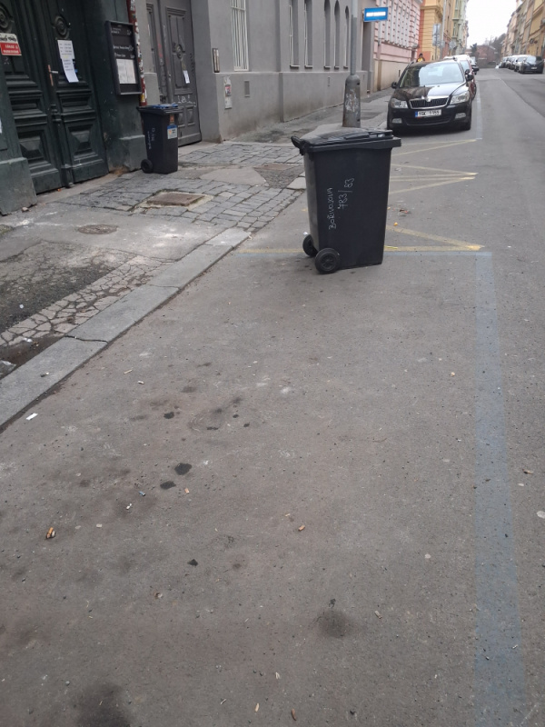 den za dnem se opakuje stejná situace, týden co týden. V této budově někdo neustále zabírá parkovací místa tím, že na ulici nechává odpad.