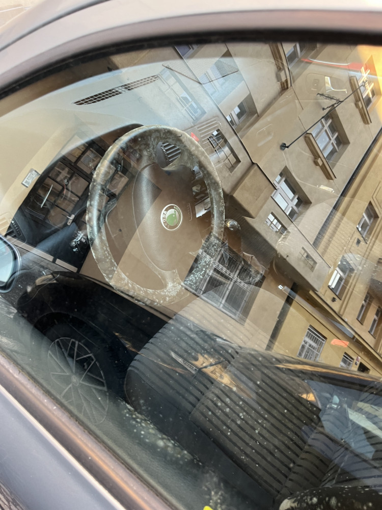 Dlouhodobě stojící auto, zevnitř plesnivé. Blokuje stání pro obyvatelé bytovky.
