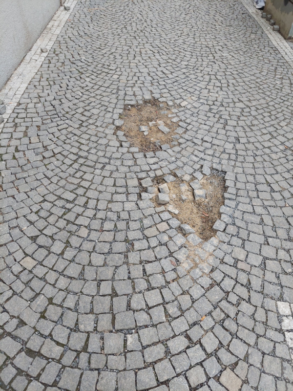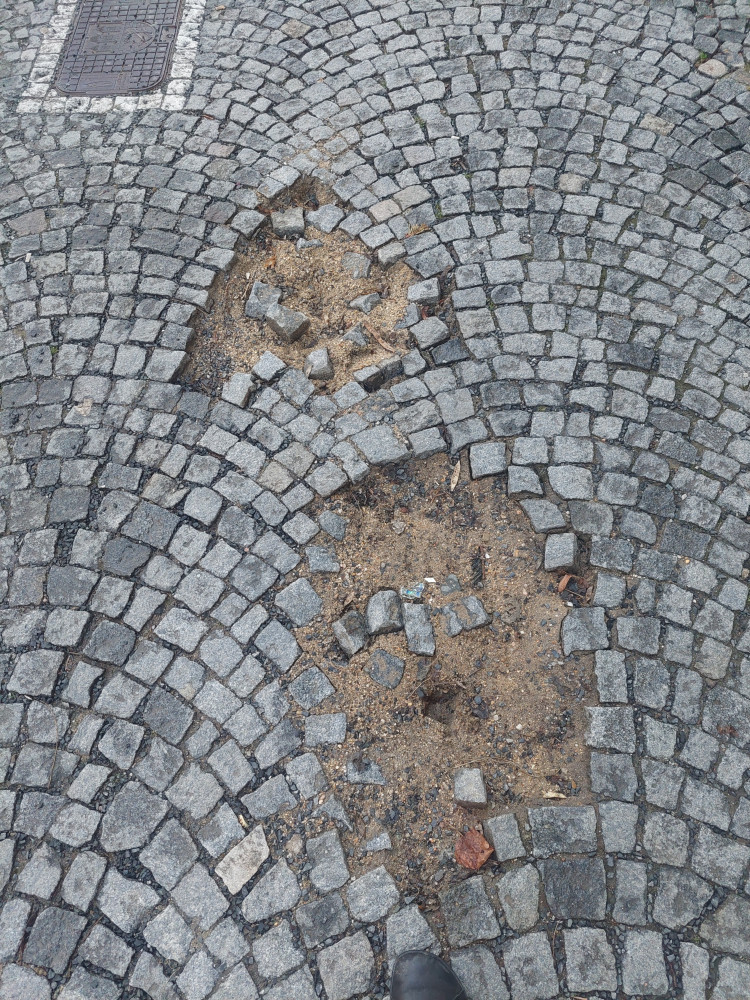 Velké díry v chodníku.